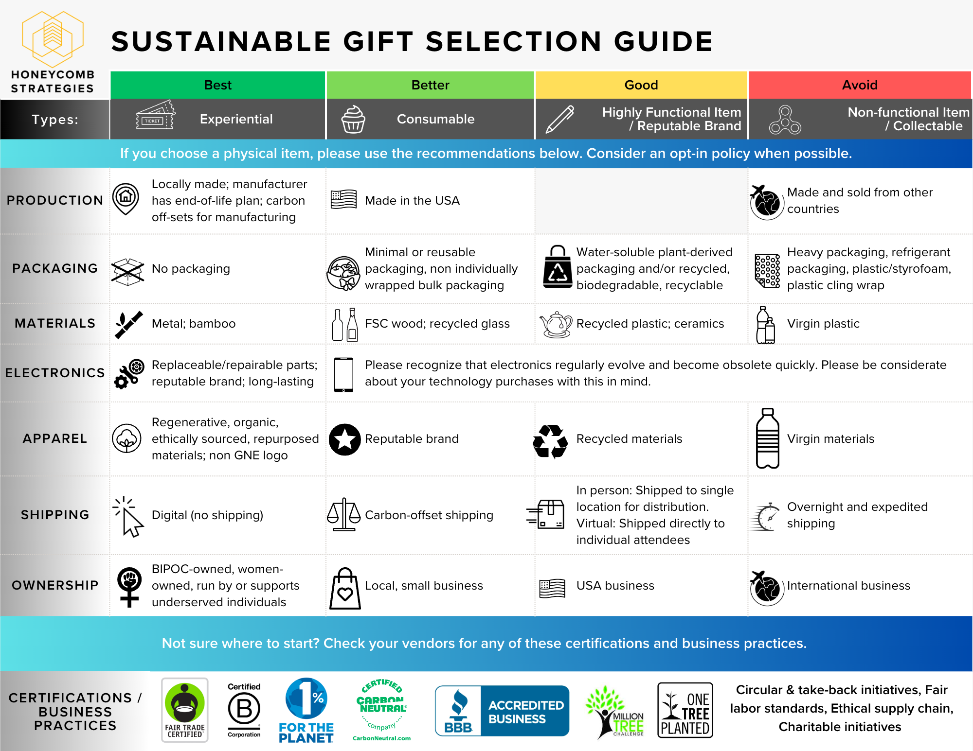 We’ve partnered with Honeycomb Strategies to manage the sustainability of our event.