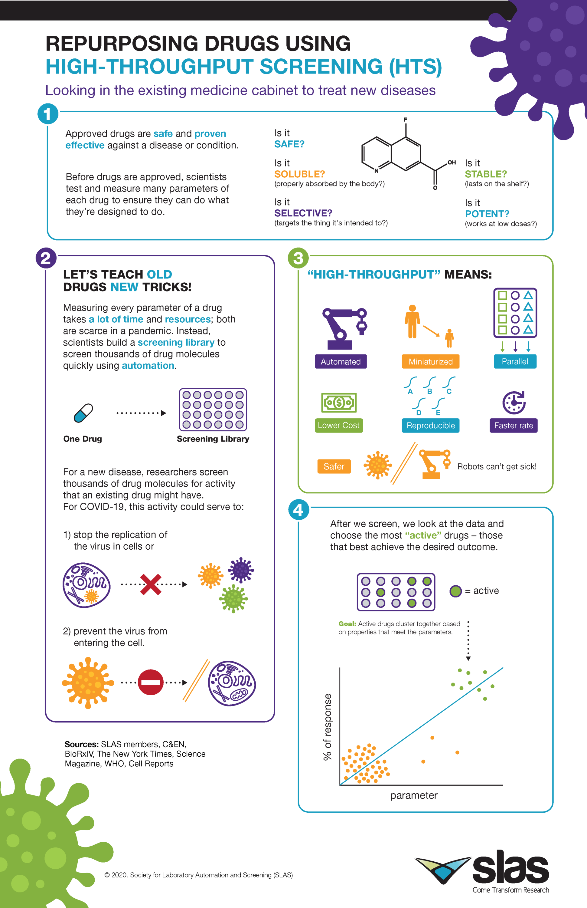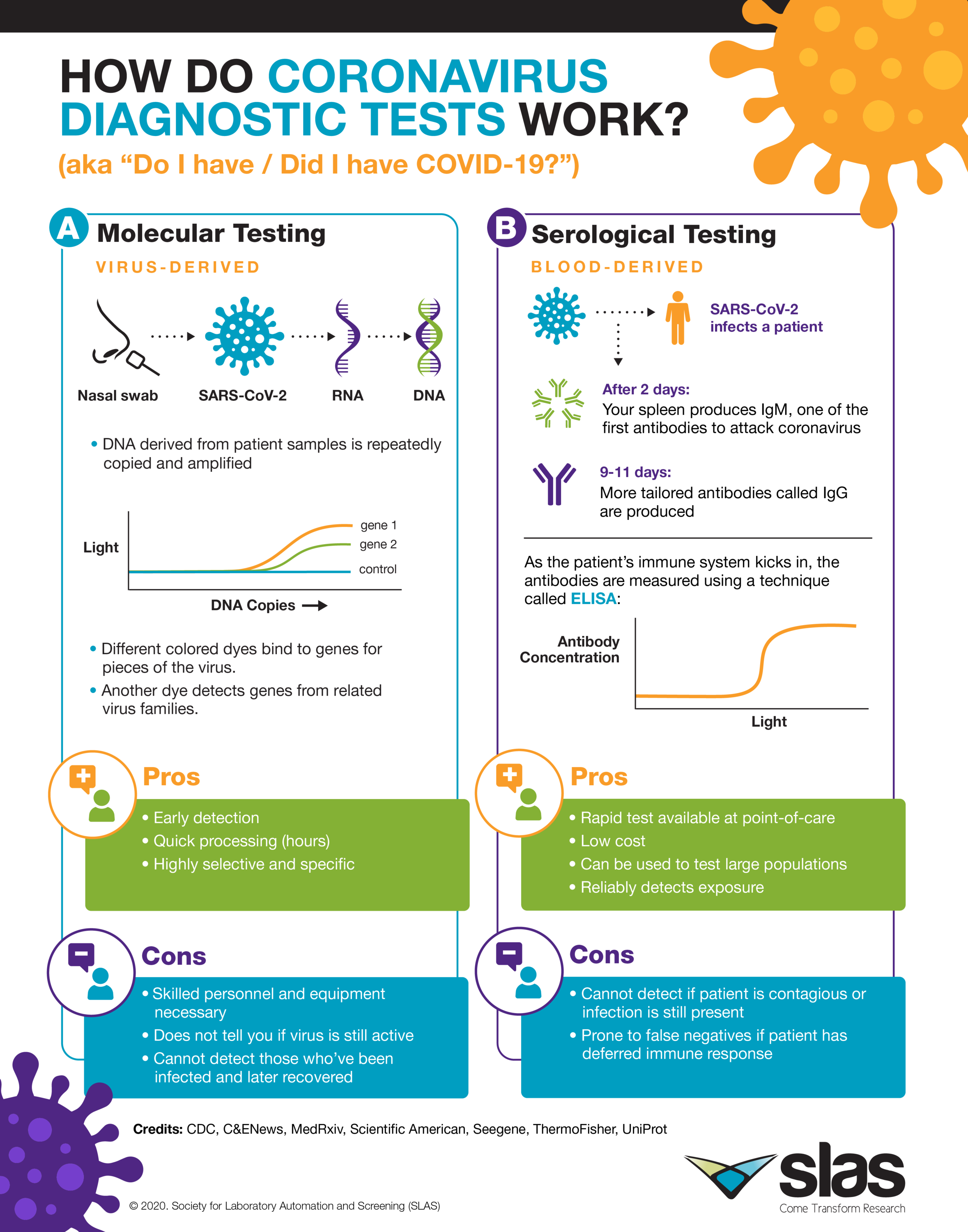 SLAS has created a series of infographics to help explain the technical and often complex terms discussed during the COVID-19 pandemic. These infographics will help illustrate, in very basic terms, the scientific research behind the ongoing work that is being done in labs worldwide to better understand the nature of the virus, diagnose and manage patients, develop vaccines, and discover more effective ways to stop the pandemic and save lives.
